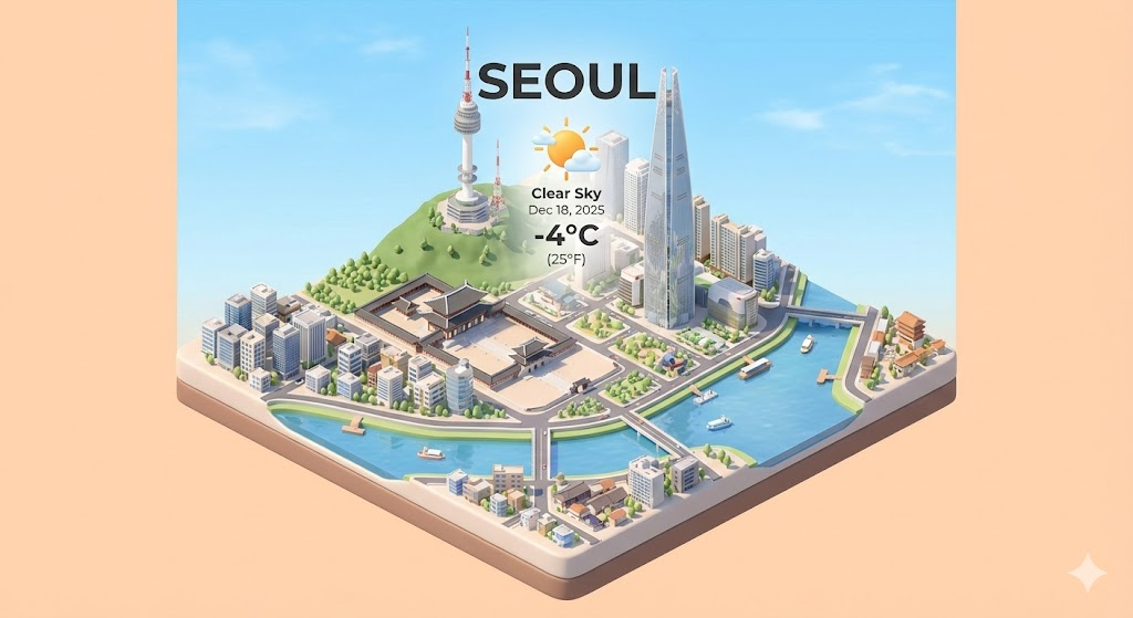 JSON 프롬프트로 만든 서울(Seoul) 미니어처.
