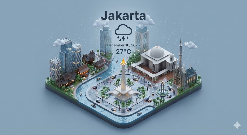 자카르타 미니어처를 생성한 프롬프트는 현재 날씨를 적용하도록 되어있다.